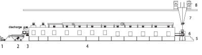 | 1. Dispositif de pulvérisation 2. Dispositif de tamisage 3. Dispositif de nettoyage 4. Sécheur à bande |