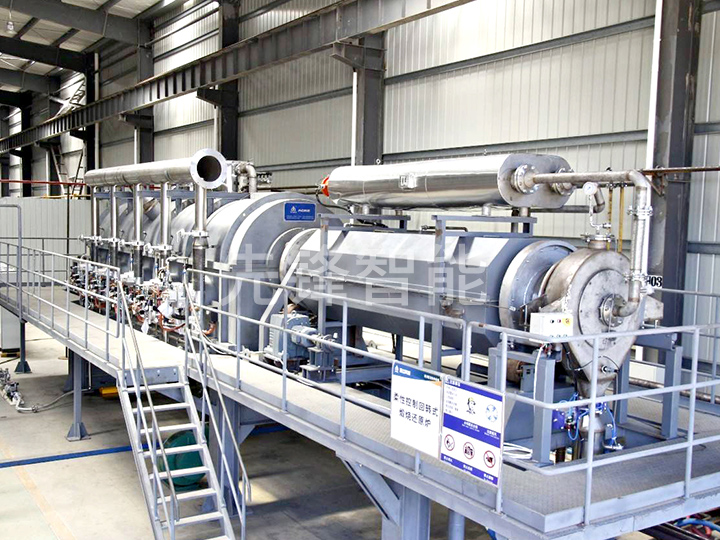濕物料從干燥機一端投入后,在內(nèi)筒均布的抄板器翻動下,物料在干燥器內(nèi)均勻分布與分散,并與并流(逆流)的熱空氣充分接觸,加快了干燥傳熱,傳至推動力。在干燥過程中,物料在帶有傾斜度的抄板和熱氣流的作用下,可調(diào)控地運動至干燥機另一段星形卸料閥排出成品。
