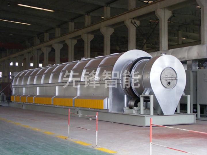 間接加熱連續(xù)操作型焙燒爐工作時,物料經(jīng)爐頭喂料器進入爐筒,加熱爐膛內(nèi)裝有電熱元件或燃料燃燒器,通過自動控制系統(tǒng)調(diào)節(jié)電熱元件的電流或燃燒器的火焰來控制爐膛溫度,從而使物料在一定溫度下進行焙燒。爐筒操作時水平或傾斜。物料在爐筒內(nèi)一邊焙燒,一邊在爐筒轉(zhuǎn)動下向前移動,焙燒后的物料從出料端進入下一道工序。物料的焙燒時間可通過調(diào)節(jié)爐筒轉(zhuǎn)速或爐筒與水平的夾角來控制。