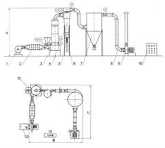 7. Espanador de inflagem 8. Sistema de tubula??o 9. Ventilador 10. Gabinete de controle 11. Alimentador 12. Filtro de ar |